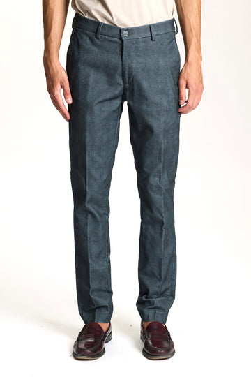 Realizzato in cotone tinto in filo stretch ritorto, questo tessuto pregiato regala una mano piacevole, avvolgente e calda, ma allo stesso tempo raffinata. La costruzione sartoriale si riflette nei dettagli: le due tasche anteriori con applicazione in cucitura e le posteriori disegnano un equilibrio perfetto tra funzionalità ed estetica.
